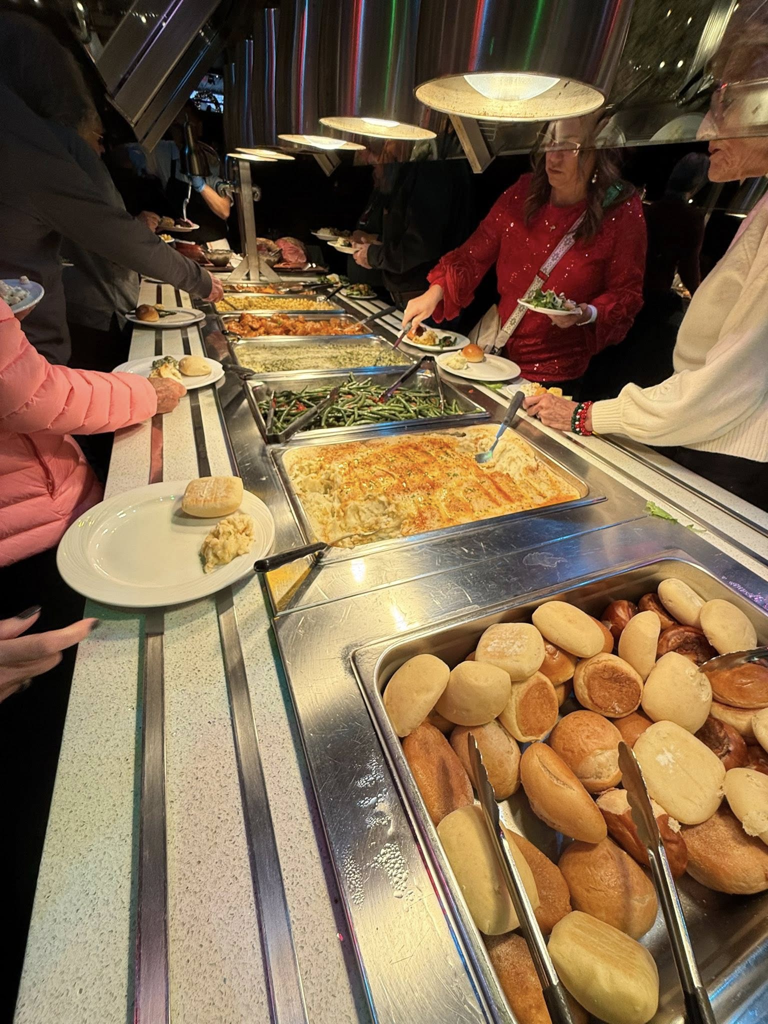 Enjoy a delicious buffet featuring mouth-watering entrees & cold & hot side options plus coffee, lemonade, iced tea are included. Specialty drinks and desserts are available for a nominal fee—but trust us, you won’t leave hungry.